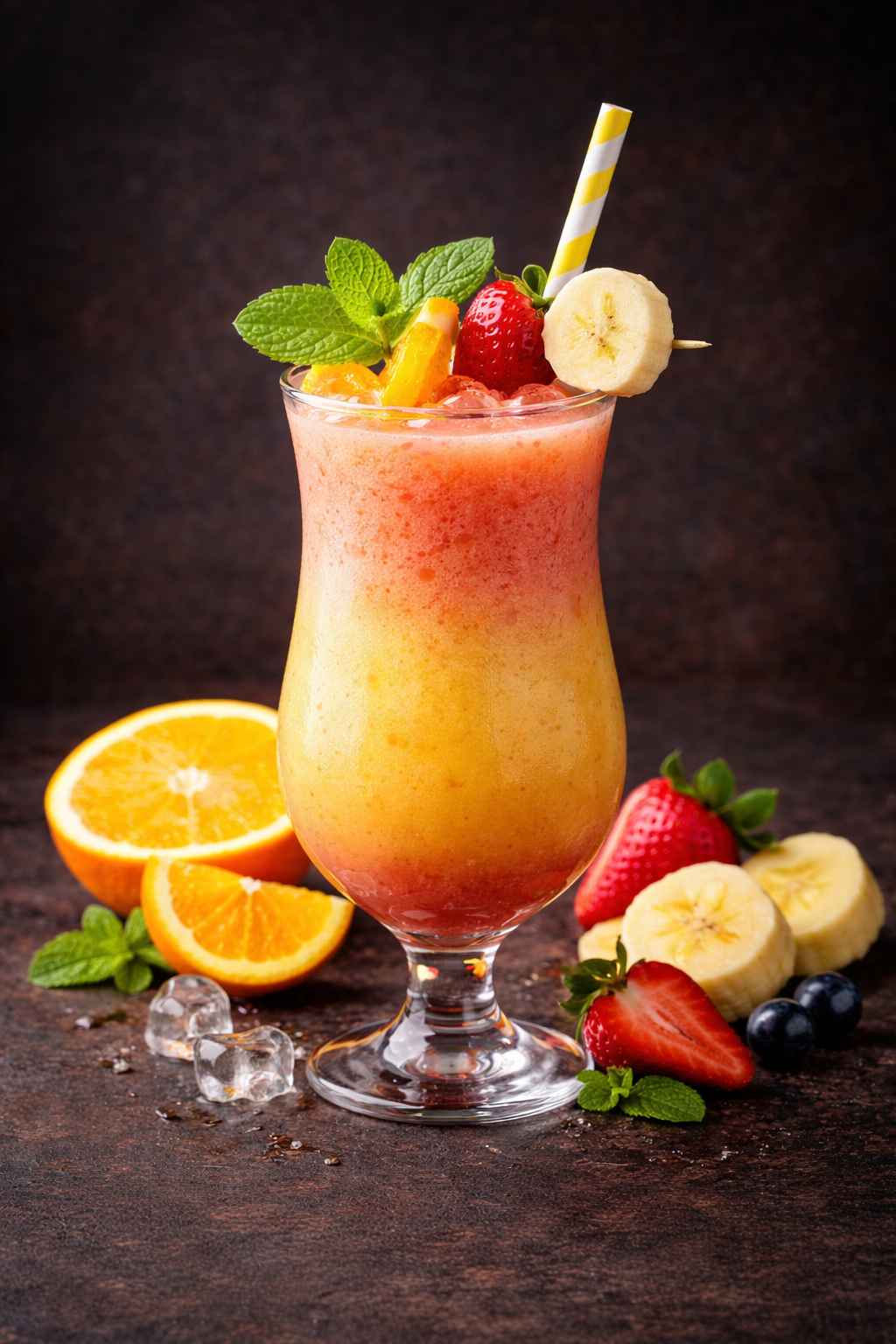 Fruchtiger Mix aus Orange, Banane und Erdbeeren,
